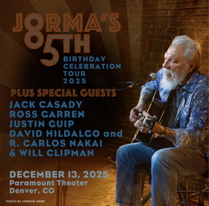 Kaukonen’s final performance on this run will take place on December 13 at the Paramount Theatre in Denver, featuring Indigenous artists R. Carlos Nakai and Will Clipman, as well as David Hidalgo, along with Casady, Garren, and Guip.
