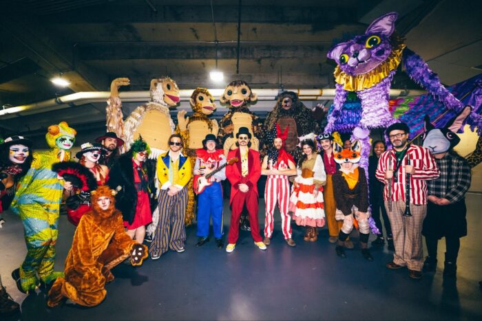 The opening night of Goosemas XII took place last evening at the Amica Mutual Pavilion (aka the AMP) in Providence, RI. As with prior installments of the annual event, the performance was built around a theme. In this instance it was “Barnaby Glimpse’s Show Upon Time: A Phantom Menagerie” which was set in 1734. The band members were dressed in period costumes and were joined on stage by Stuart Bogie on woodwinds as well as animal puppets on stilts during various moments of the show.